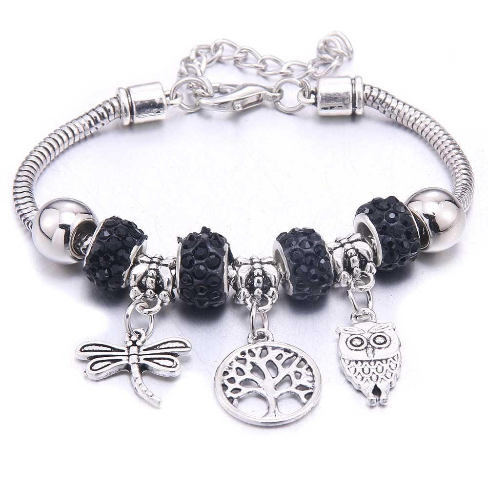 Pulseira Berloque Prata com efeito mola, ajustável ao seu pulso, combinamos os Berloques mais lindos em formato de coruja e libélula, berloque de cristal que garante um brilho ainda mais único e realça o seu look.
